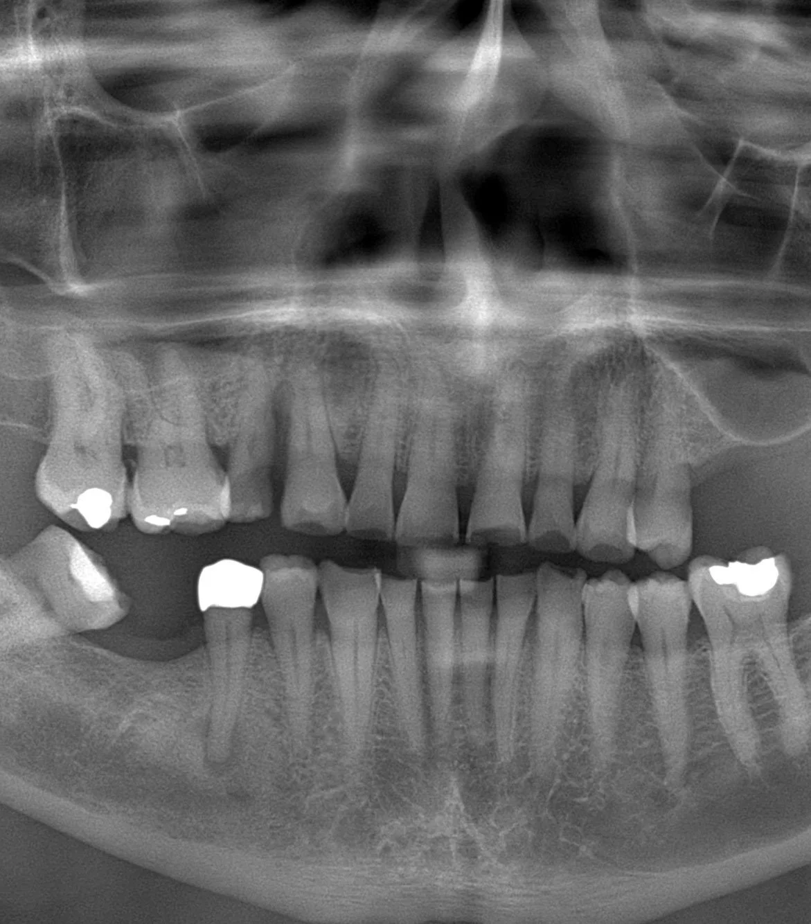 Solicitamos una radiografía panorámica para evaluar el estado general de los maxilares, dientes remanentes y estructuras anatómicas relevantes. Este examen nos entrega una visión global que ayuda a planificar correctamente el tratamiento.